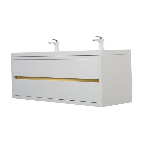 60 in. Wall-Mounted Glossy White Bath Vanity with Glossy White Solid Surface Top Assembled