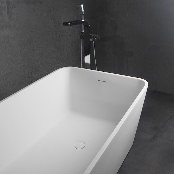 67 in. x 32 in. Stone Resin Solid Surface Freestanding Soaking Bathtub with Left Drain in Matte White