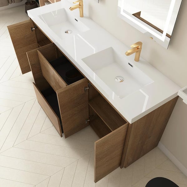 72 in. Freestanding Natural Oak Bath Vanity with White Cultured Marble Top Unassembled