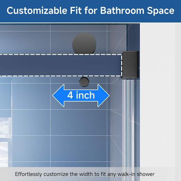 75 in. W x 60 in. H Sliding Frameless Shower Door in Matte Black Finish with Clear Glass