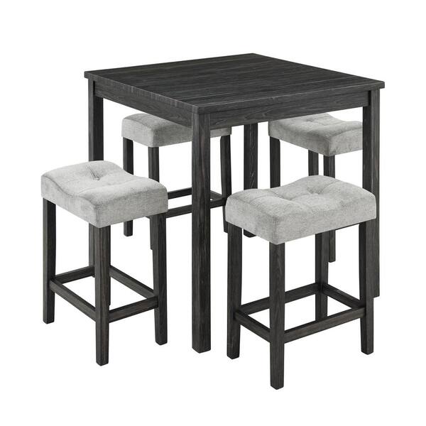 TD Garden Black 5-Piece Wood Outdoor Dining Set with Gray Cushion