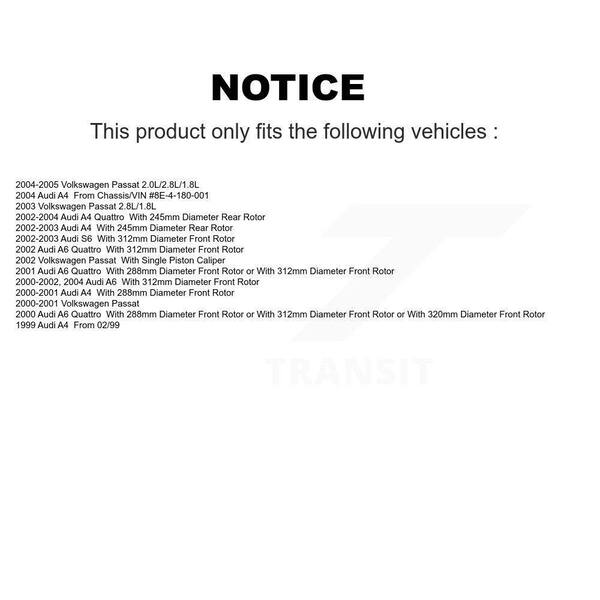 Front Rear Ceramic Brake Pads Kit For Volkswagen Passat Audi A4 Quattro A6 S6 KTC-100421