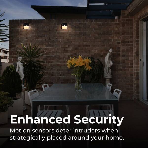 • Motion sensor detects movement up to 12 feet for bright lighting