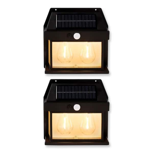 220 Lumen Motion Sensing LED Outdoor Solar Dual Edison Bulb Wall or Fence Light in Matte Black (2-Pack)