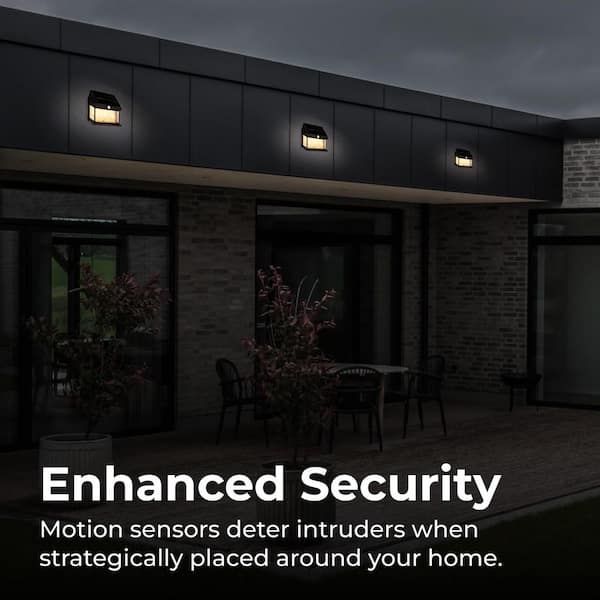 280 Lumen Motion Sensing LED Outdoor Solar Triple Edison Bulb Wall or Fence Light in Matte Black (2-Pack)