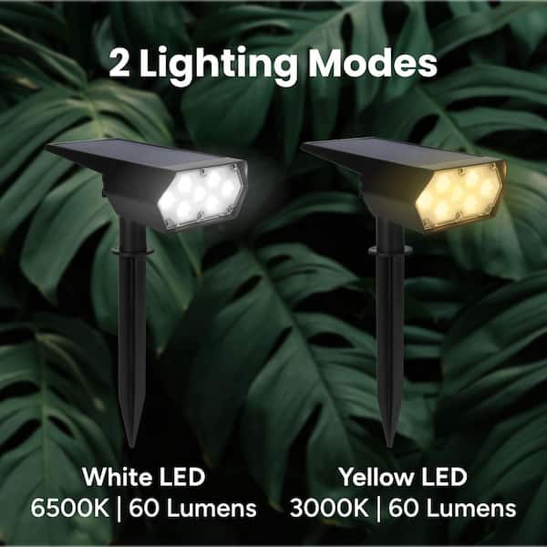 60 Lumens Matte Black Solar LED Outdoor Spotlight with Multiple Lighting Modes, Wall/Ground-Stake Installation (2-Pack)
