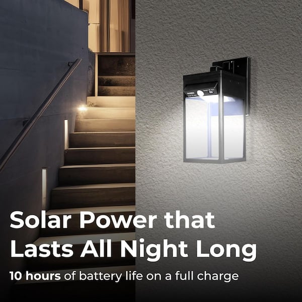 Modern Minimal Motion Sensing LED Outdoor Solar Lantern-Style Wall Light Sconce in Matte Black