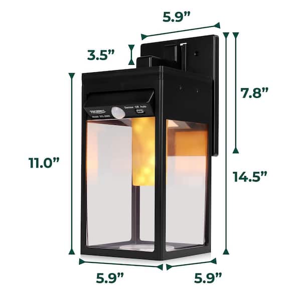 Modern Minimal Motion Sensing LED Outdoor Solar Lantern-Style Wall Light Sconce with Flame Effect in Matte Black