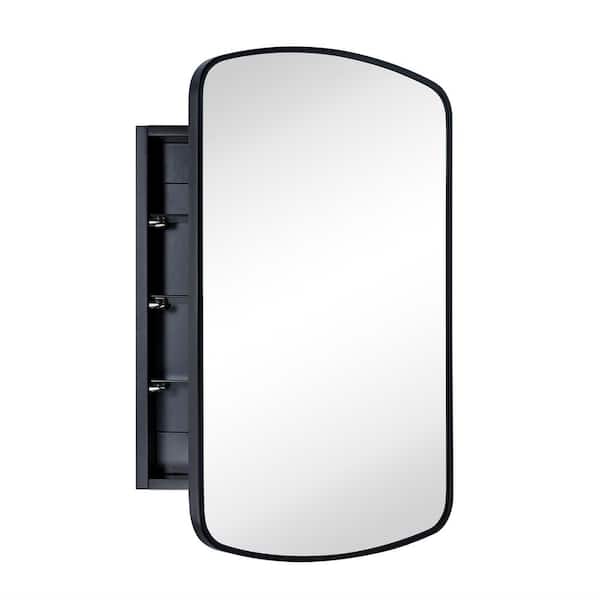18 in. W x 27 in. H Arched Recessed and Surface Mount Metal Framed Bathroom Medicine Cabinet with Mirror in Matt Black