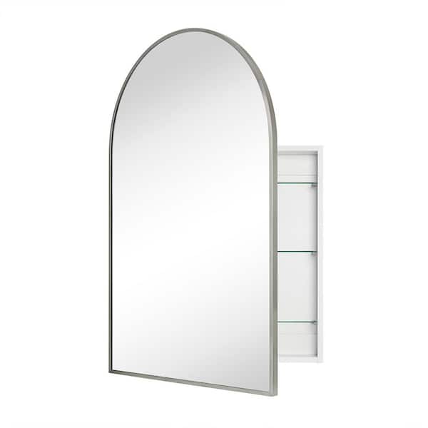 20 in. W x 30 in. H Arched Metal Framed Recessed and Surface Medicine Cabinet with Mirror in Brushed Nickel