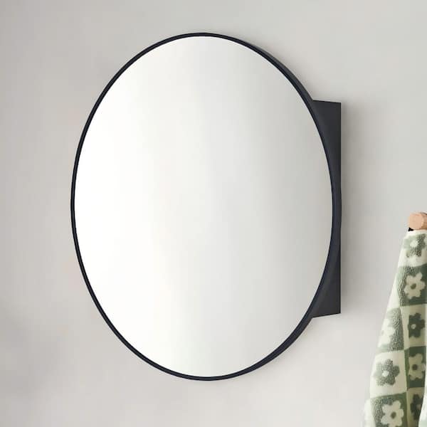 26 in. W x 26 in. H Circular Round Surface Mount Metal Framed Storage Medicine Cabinet with Mirror in Matt Black