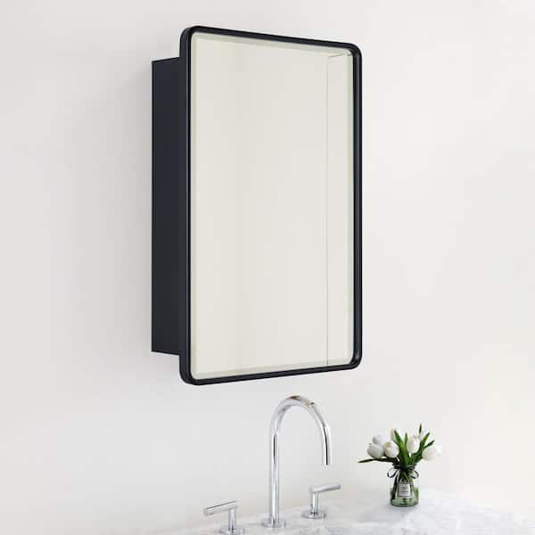 Eldee 16 in. W x 24 in. H Surface Mount Rectangular Metal Framed Bathroom Medicine Cabinet with Mirror in Matt Black