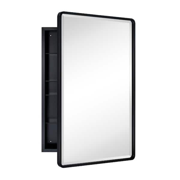 Eldee 20 in. W x 30 in. H Surface Mount Rectangular Metal Framed Bathroom Medicine Cabinet with Mirror in Matt Black