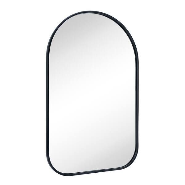 FH 23 in. W x 37 in. H Small Arched Framed Wall Mounted Bathroom Vanity Mirror in Matt Black