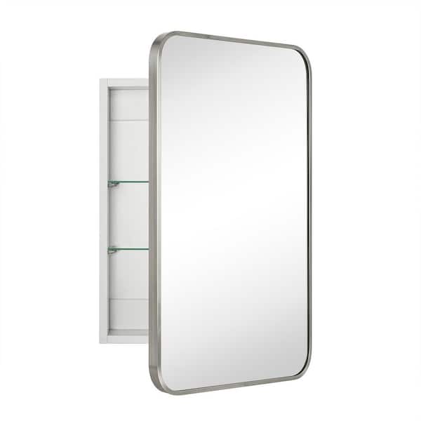 Garnes 16.5 in. W x 24 in. H Rectangular Recessed or Surface Mount Metal Medicine Cabinet with Mirror in Brushed Nickel