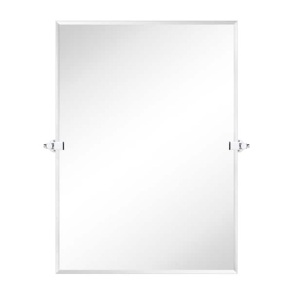 Nethery 30 in. W x 40 in. H Rectangular Frameless Beveled Wall Mounted Bathroom Vanity Mirror with Brackets in Chrome