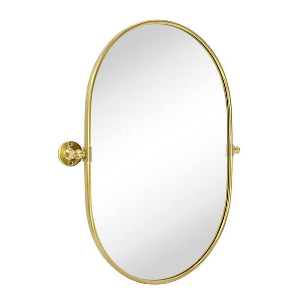 Pill 20 in. W x 30 in. H Small Oval Metal Framed Tilting Wall Mounted Bathroom Vanity Mirror in Brushed Gold