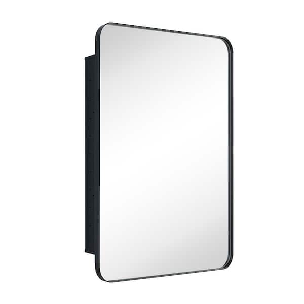WH 24 in. W x 36 in. H Rectangular Stainless Steel Recessed Framed Medicine Cabinet with Mirror in Matt Black