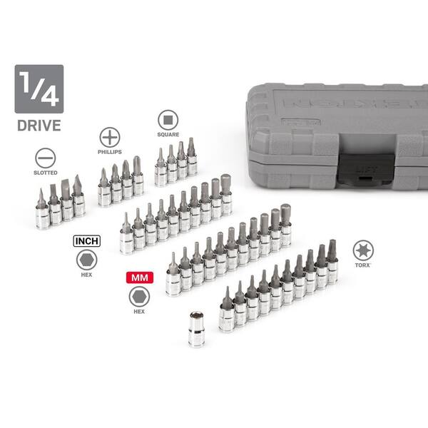 1/4, 3/8, 1/2 in. Dr. Hex, Torx, TR Torx, Phillips, Slotted, Square, Triple Square Bit Socket Set with Cases (198-Piece)