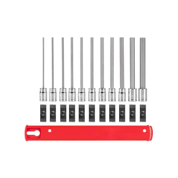 1/4 Inch Drive Long Hex Bit Socket Set with Rail, 11-Piece (2-8 mm)