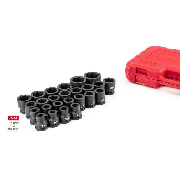 3/4 in. Drive 6-Point Impact Socket Set with Case, 25-Piece (17-50 mm, Common Sizes)