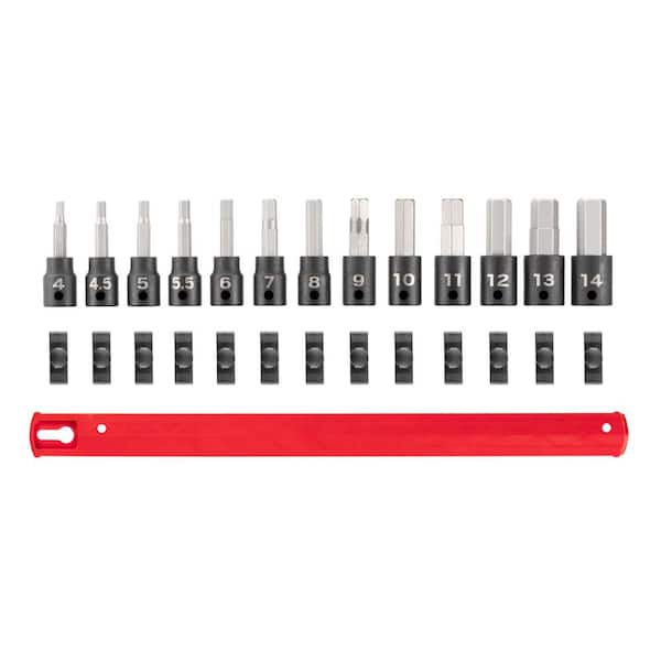 3/8 in. Drive Hex Impact Bit Socket Set with Rail, 13-Piece (4-14 mm)