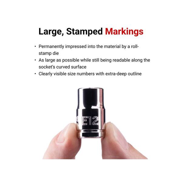 • Large, stamped markings that won't wear off