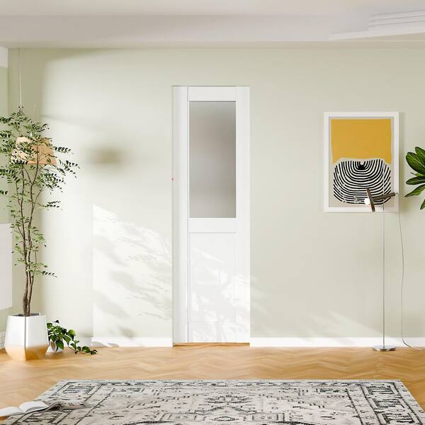 24 in. x 80 in. 1/2-Lite, Frosted Glass, Solid Core, DIY Painted, White Primed, MDF Sliding Door with All Hardware