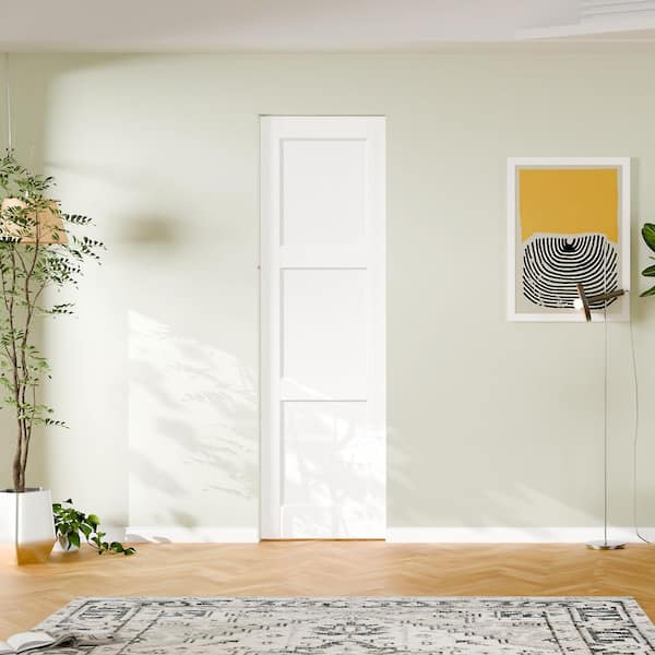 24 in. x 80 in. 3 Panel, Solid Core, DIY Painted, White Primed, MDF, Pre-Assembled Sliding Door with All Hardware