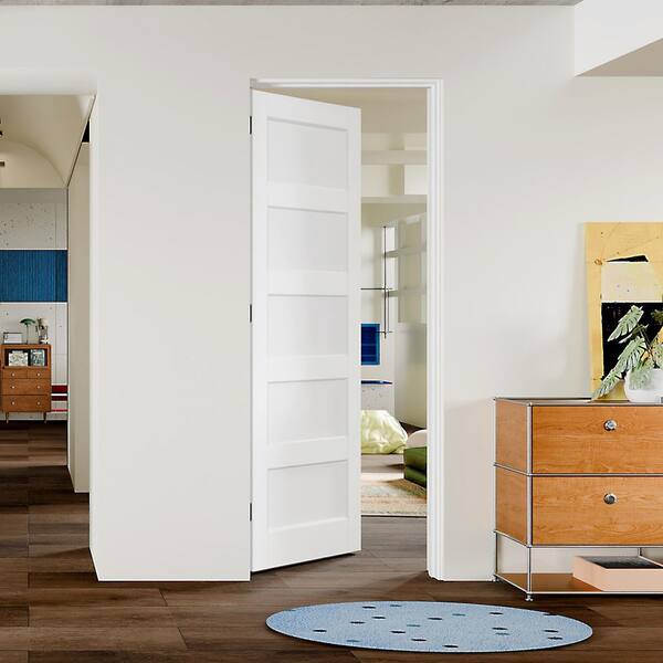 24 in. x 80 in. 5-Panel, White Primed, Solid Wood & MDF Prehung Interior Door Left-Handed with Door Jamb and Hardware