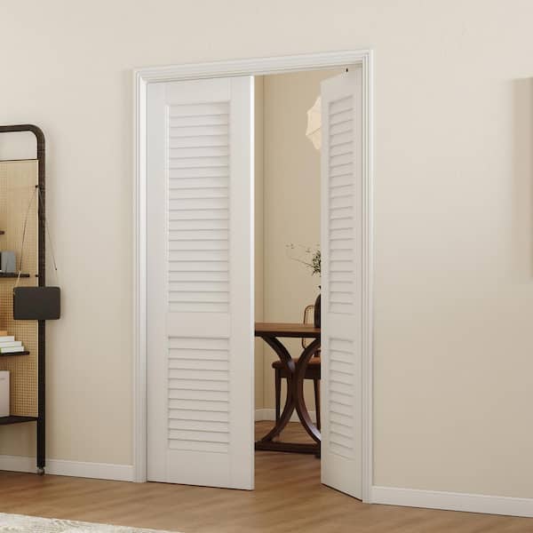 24 in. x 80 in. Louvered MDF, White Primed Wood, Painted Pre-Finished Door Panel Interior Door Slab Without Hinges