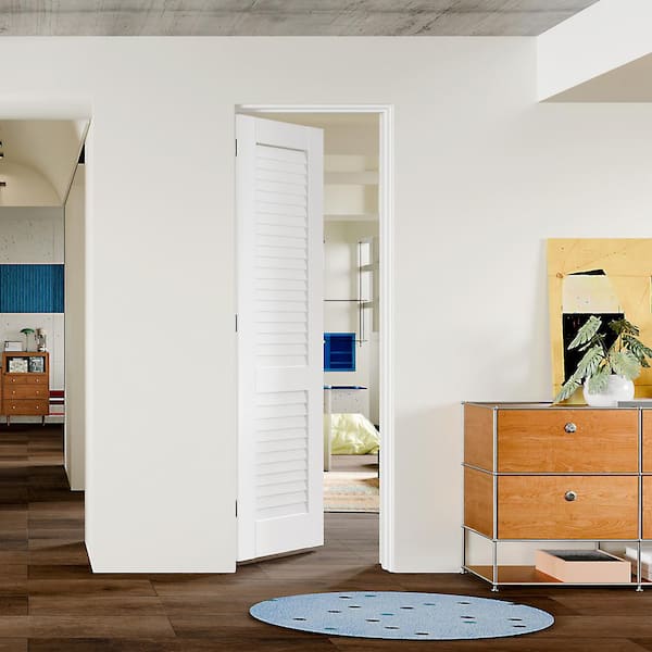 24 in. x 80 in. Louvered Panel, Composite, White Primed, MDF Prehung Interior Door Left-Handed Door Jamb and Hardware