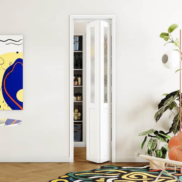 24 in x 80 in White, MDF, Half Tempered Glass Panel Bi-Fold Interior Door for Closet, with Hardware Kits