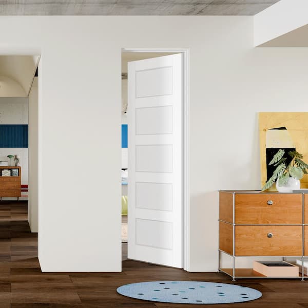 28 in. x 80 in. 5 Panel, White Primed, Composite Prehung Interior Door Right-Handed with Door Jamb and Hardware Kit