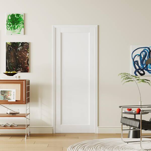 30 in. x 80 in.1 Panel MDF, White Primed Wood, Can Be Painted Pre-Finished Door Panel Interior Door Slab with Door Frame
