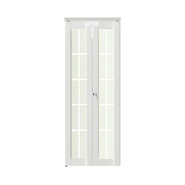 30 in. x 80 in. 10 Lite Decorative Frosted Glass Solid Core White PVC Covering MDF Bi-fold Doors with Full Accessories