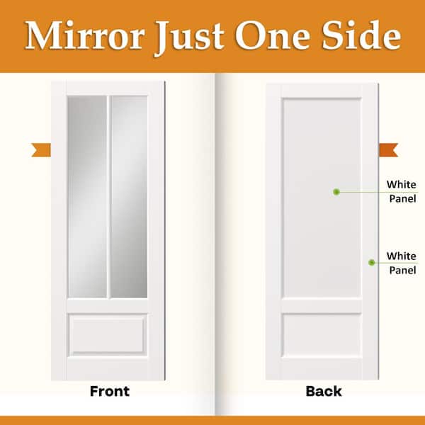 30 in. x 80 in. 2 Lite, Mirrored Glass, White Primed, MDF Prehung Interior Door Left-Handed with Door Jamb and Hardware