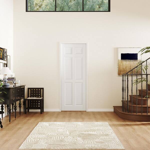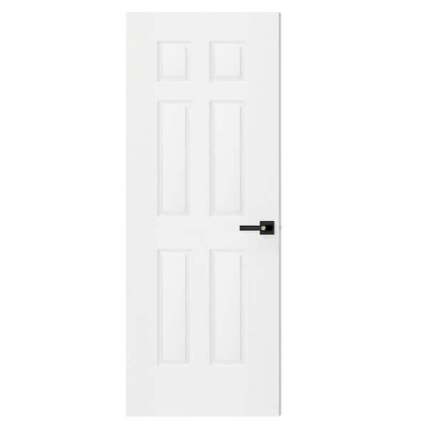 30 in. x 80 in. 6 Panel, Composite, White Primed, Hollow Core, MDF Interior Door Slab With Black Lever Handle