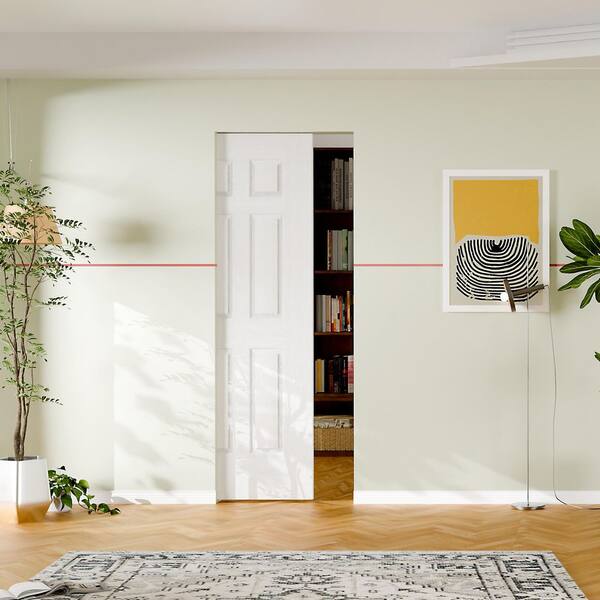 30 in. x 80 in. 6-Panel, Hollow Core, White Primed, MDF, Textured Pre-Assembled Sliding Door with All Hardware