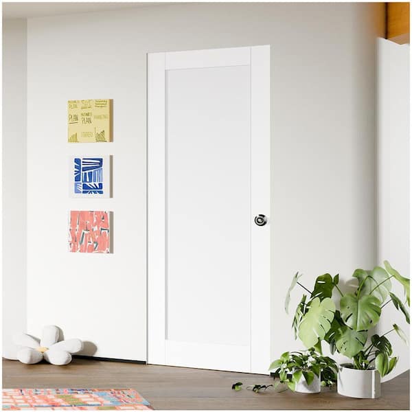 30 in. x 80 in. MDF, Composite, Pre-assembled, Primed, White, 1 Panel Interior Door Slab With Black Lever Handle