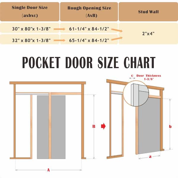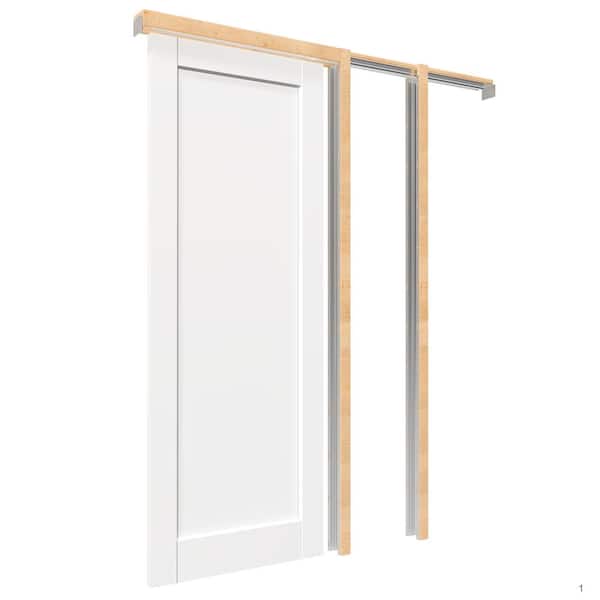30 in. x 80 in. Panel MDF White Primed Wood, can be painted Pre-Finished Door Panel Pocket Door Frame with All Hardware