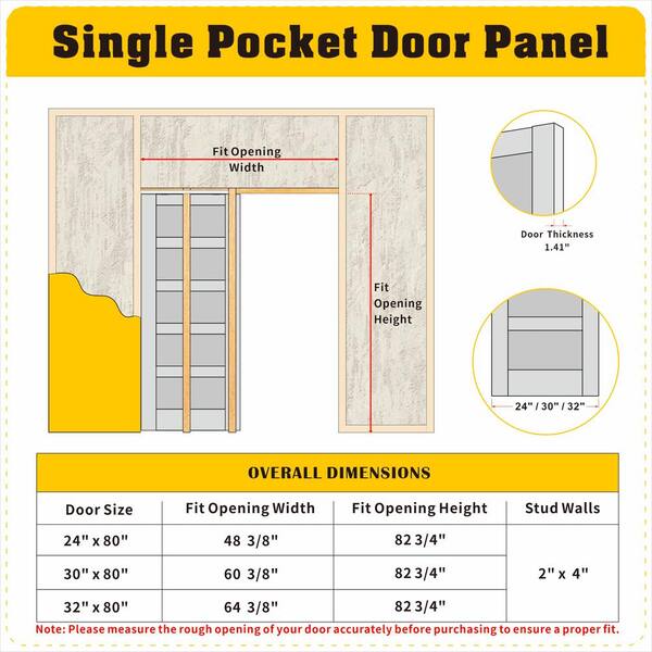 30 in. x 80 in. Panel MDF White Primed Wood, can be painted Pre-Finished Door Panel Pocket Door Frame with All Hardware