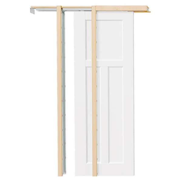 30 in. x 80 in. T Shaped, 3-Panel MDF Primed, Can be Painted Pre-Finished Door Panel Pocket Door Frame with All Hardware