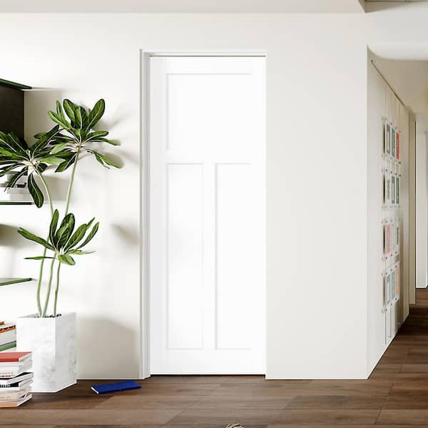 30 in. x 80 in. T Shaped, Composite, White Primed, MDF Prehung Interior Door Left-Handed with Door Jamb and Hardware Kit