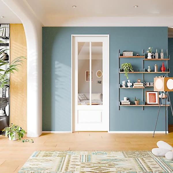 30in. x 80in. Right-Handed 2-Lite Mirror Glass Solid Core White MDF Wood Prehung Interior Door w/ Door Jamb Hareware Kit