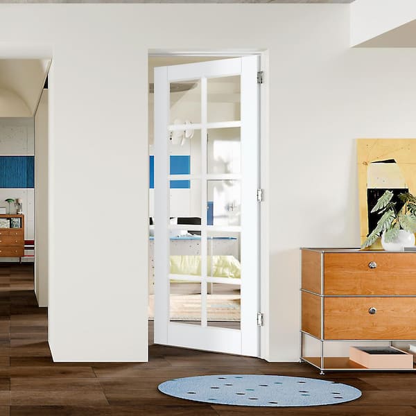 32 in. x 80 in. 10 Lite, Clear Glass, White Primed, MDF Prehung Interior Door Right-Handed Door Jamb and Hardware Kit
