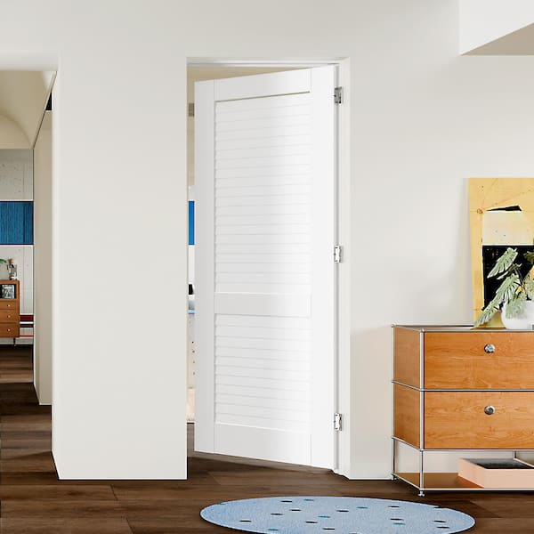 32 in. x 80 in. Louvered Panel, Composite, White Primed, Prehung Interior Door Right-Handed with Door Jamb and Hardware