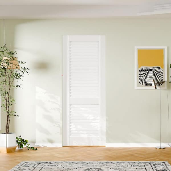 32 in. x 80 in. Louvered Panel, Solid Core, DIY Painted, White Primed, MDF, Pre-Assembled Sliding Door with All Hardware