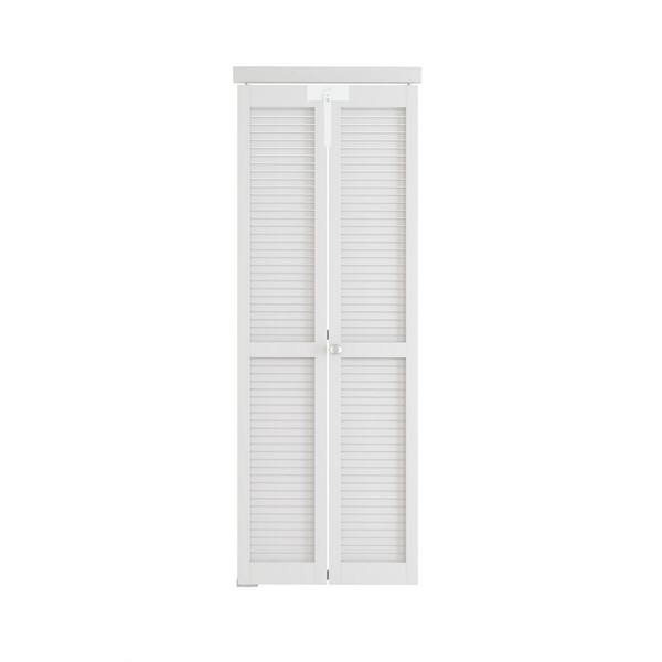 36 in. x 80 in. Louver Solid Core White PVC Covering Solid Wood MDF. Bi-fold Door with Locks, Handles