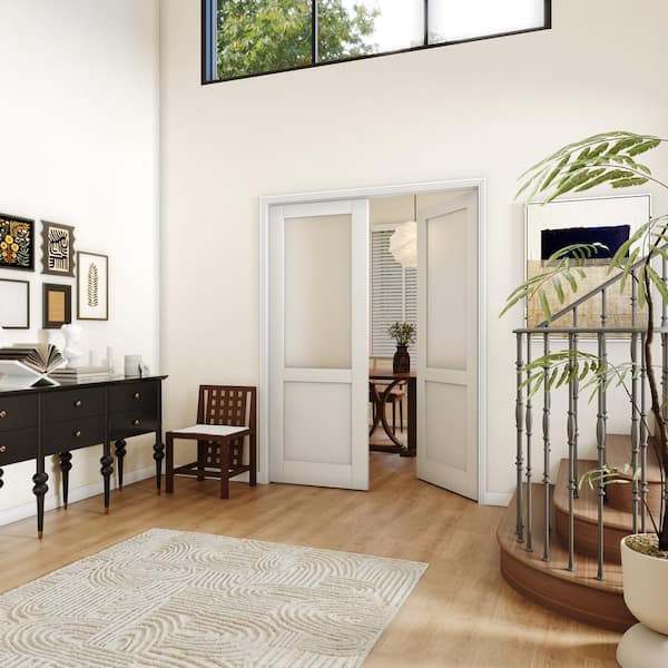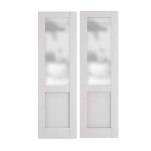 48 in. x 80 in. (Double 24 in. Doors) MDF, Painted, Primed, White, 1/2 Lite, Frosted Glass, Single Interior Door Slab